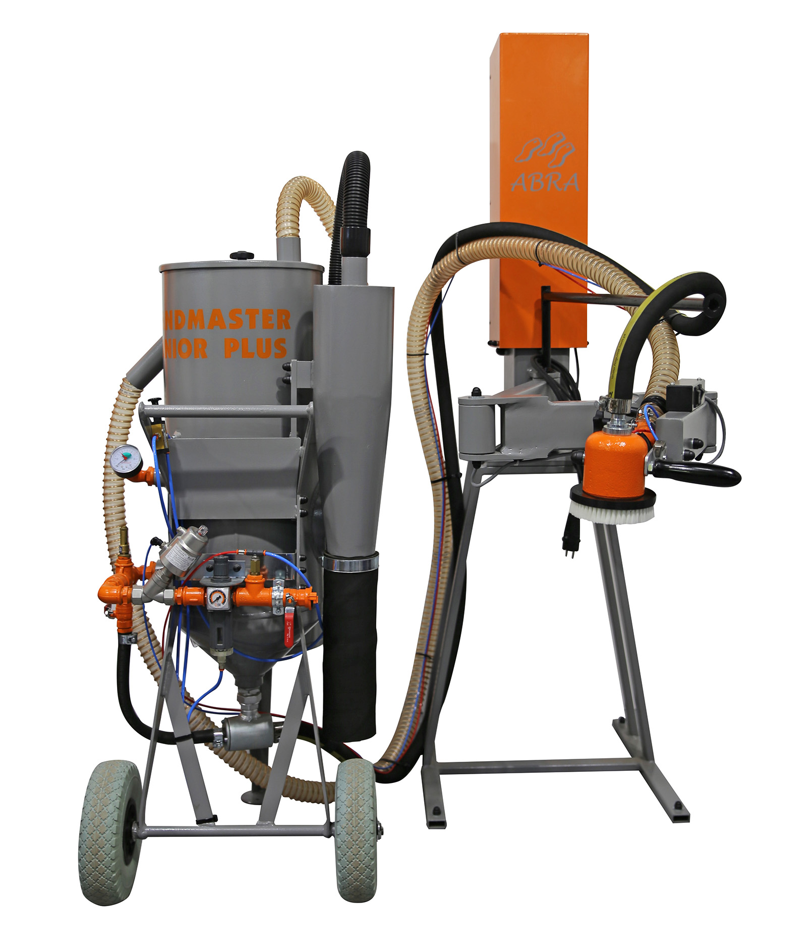 Maskinen kan kobles til våre Sandmaster Junior Plus og Sandmaster Pro, samt andre trykkblåsemaskiner. Armen består av tre ledd, noe som gir jevn bevegelse og komfortabel betjening av hodet på den sandblåste overflaten. Den bærer hele vekten av sandblåsingen og krever kun horisontale bevegelser.